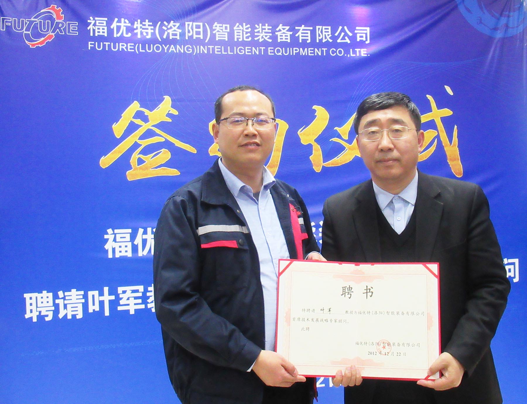 12月22日下午,福優(yōu)特智能裝備有限公司舉行了聘請(qǐng)葉軍教授作為公司技術(shù)發(fā)展戰(zhàn)略顧問的盛大簽約儀式。福優(yōu)特智能董事長孟慶沖、總經(jīng)理秦磊、副總經(jīng)理?xiàng)顜洷爸袑庸芾碚吆图夹g(shù)團(tuán)隊(duì)參加了儀式。會(huì)議還邀請(qǐng)了軸承行業(yè)的客戶代表參與了簽約儀式。