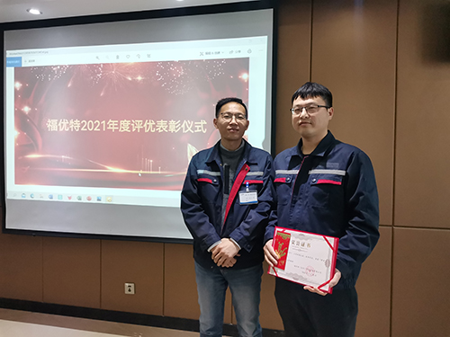 新春伊始,萬象更新。福優特(洛陽)智能裝備有限公司為樹立典型、表彰、激發干勁,2月25日在公司會議室舉行了隆重的頒獎儀式,表彰在2021年度為公司作出突出業績和貢獻的集體及個人。頒獎儀式在公司孟總熱情洋溢的致辭中有序的進行,秦總首先回顧了2021年各部門取得的成績,特別是對團隊和員工盡職盡責、不怕吃苦、任勞任怨、團結奮進的精神和模范帶頭作用給予了充分的肯定,并希望公司全員在2022年繼續發揚爭先、趕優的工作作風,愛崗敬業、勤奮工作。隨后,公司副總經理楊帥兵代表公司宣讀了獲獎團隊及員工名單。